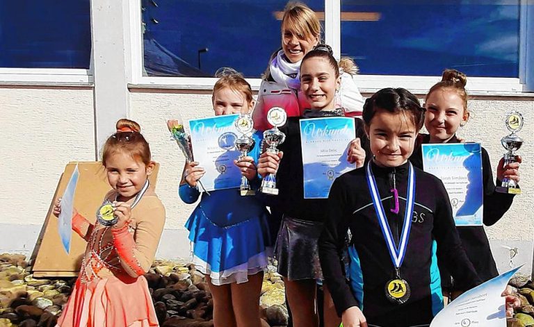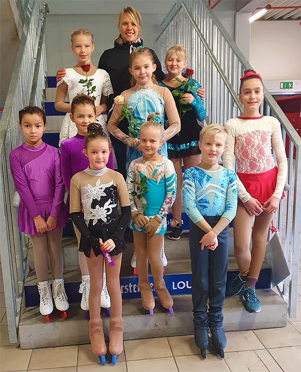 Die Pokale holten Svenja Neubert, dritter Platz Eismäuse Parcours; Lioba Brenn, dritter Platz Parcours Advanced, Gr. 1; Eva Ovsyanko, erster Platz Parcours Advanced, Gr. 2; Lia Rose Bächle, zweiter Platz Parcours Advanced, Gr. 2. Fünf weitere gute Platzierungen errangen Jael Fahrentrapp, Marie Vogt, Mila Delic und Jacob Brenn beim Parcours sowie Anna-Lena Benzler mit ihrer Kür.